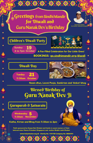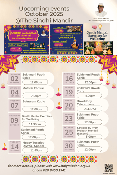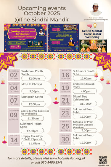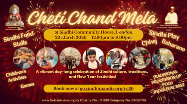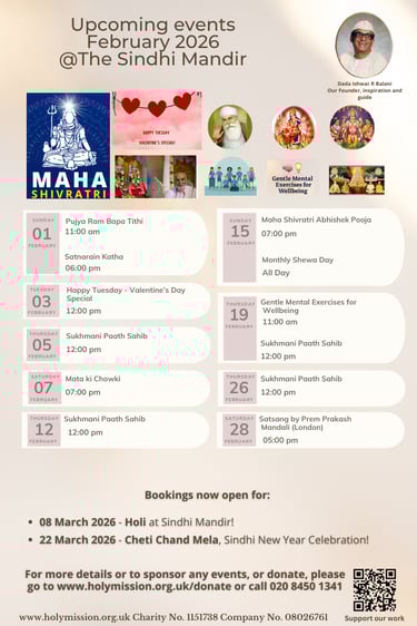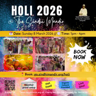 Holy Mission, also known as Sindhi Community House or Sindhi Mandir, is a dynamic community center in Cricklewood that brings together people from around the UK, especially those based in Barnet, Brent, and Harrow. Facilitated by over 120 volunteers, it organises over 200 events annually to support social welfare and improve life conditions for individuals affected by various social, economic, or physical challenges. The centre offers a broad array of activities including spiritual and cultural events, music, dance and keep fit events, health and well-being events, bereavement support, day centre with luncheon facilities, to name a few.