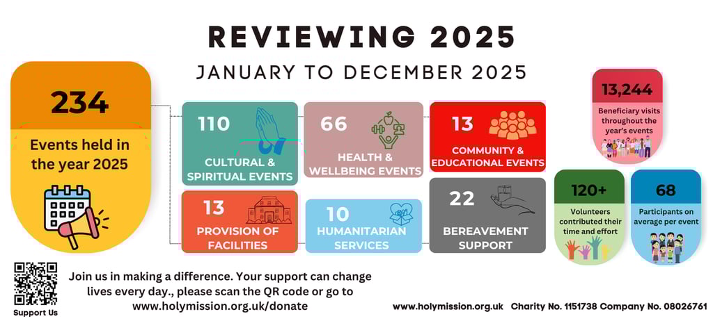 basis and include: music and culture, dance and keep fit, health and well-being, bereavement support, day centre with luncheon facilities, to name a few. Our busy centre runs over 200 events a year, and continues to attract about 1000 visits per month. Regular programmes include daily, weekly and monthly religious services, as well as social and cultural events that cater to the social and health needs of our community members.